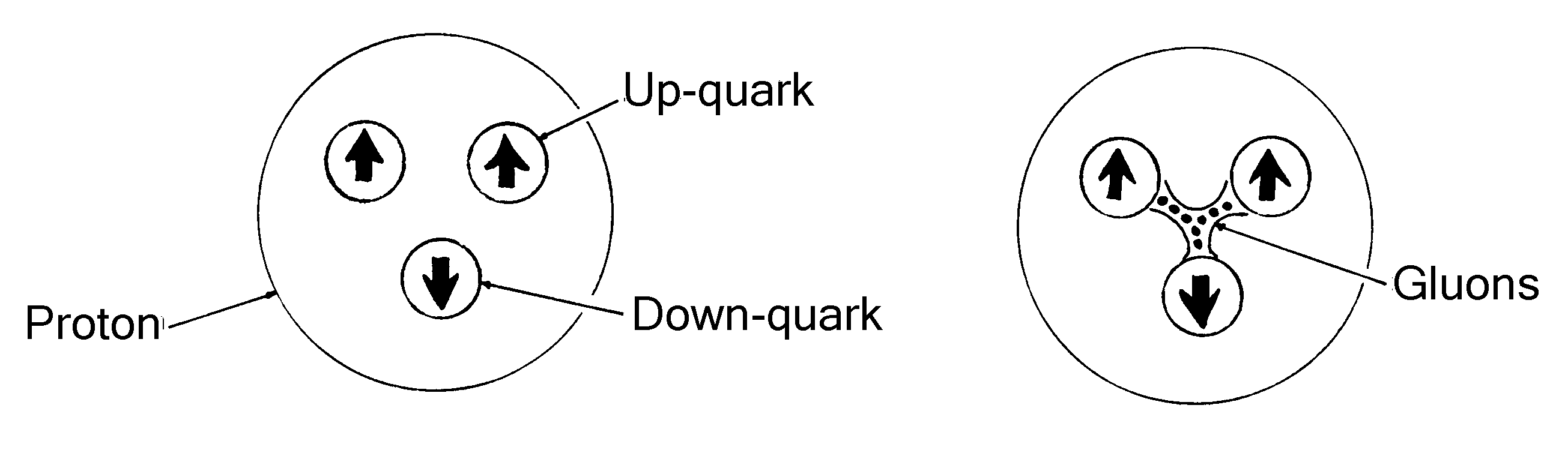 Physicists reason that a quark has never been observed in the free state is because it is impossible to have a gluon bond without a quark attached to either end 1. They speculate that if a quark is blow out of a proton in a high energy impact, two new quarks form out of the energy of impact. A new quark forms at the broken end of the gluon bond attached to the proton to restore the proton to three quarks and a new quark forms at the end of the split gluon bond attached to the quark knocked out of the proton to form a two quark meson. This is how physicists account for the mesons that appeared in Cecil Powell’s cosmic ray experiment. This account is reminiscent of the medieval argument that if an angel were cut in half because it is impossible have half an angel two new halves would immediately grow on either end of the split angel so the outcome would be two entire angels.